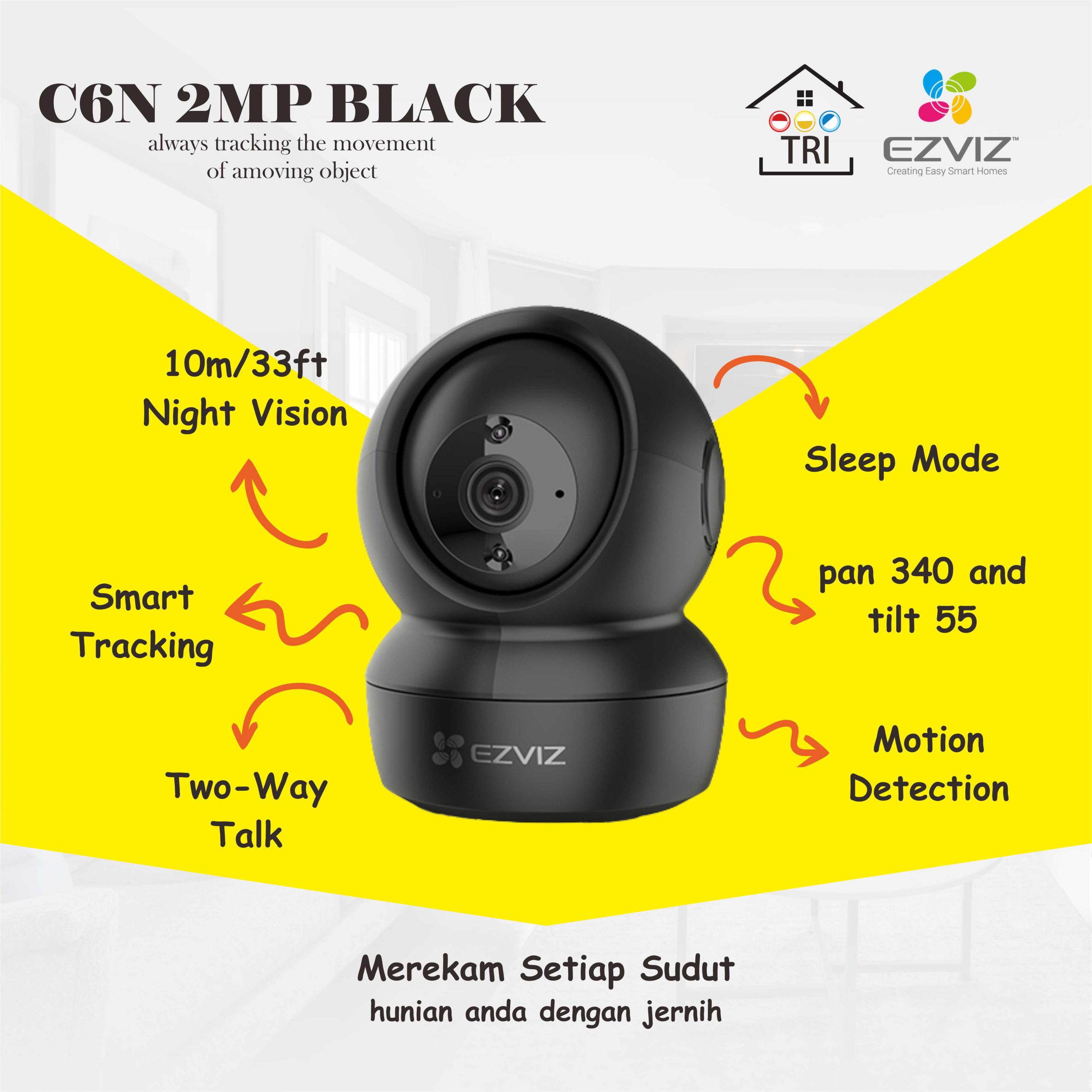 Packaging Contents : C6N camera; Base; Screw Kit; Power Cable 3m (9.8 ft.); Drill Template; Power Adapter; Quick Start Guide