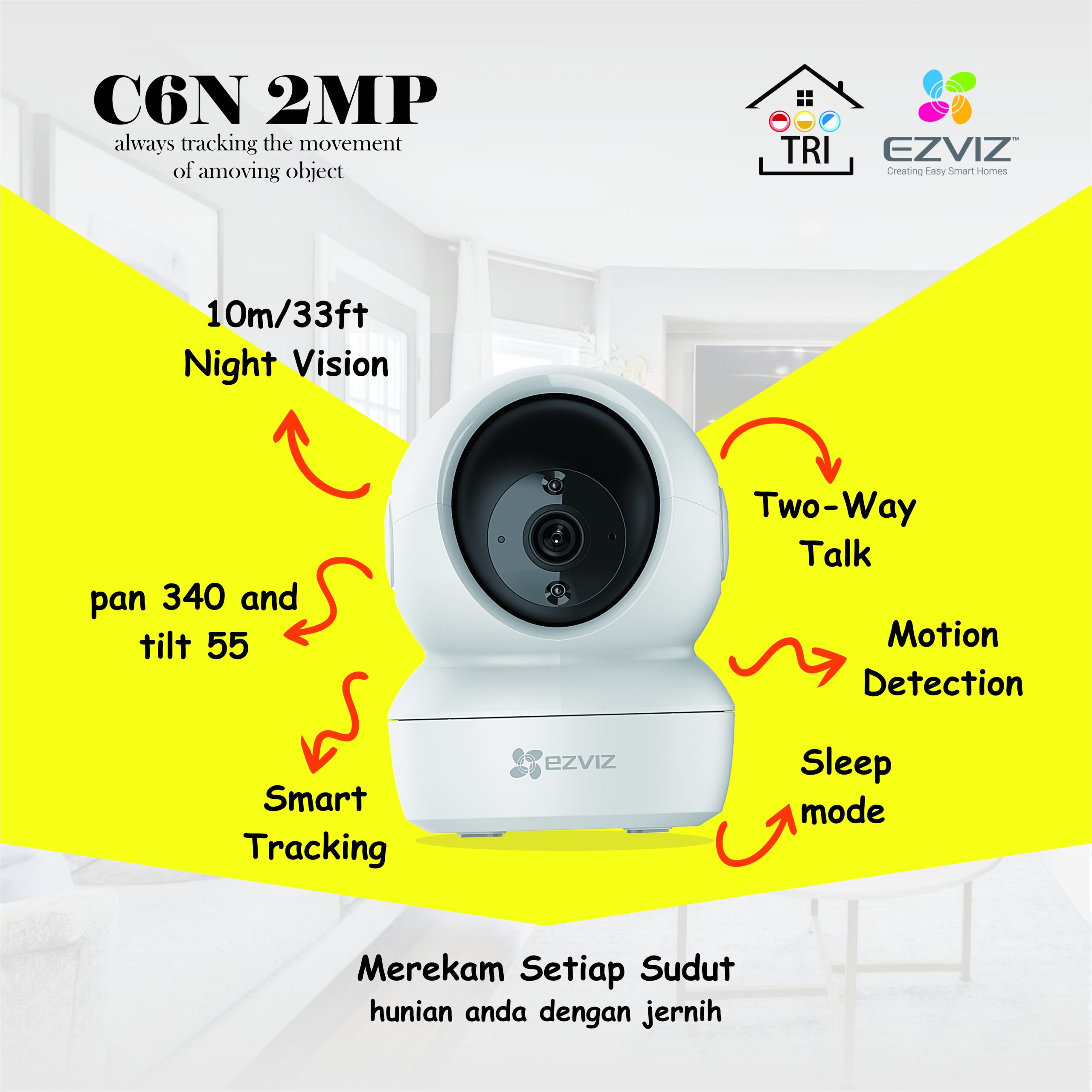 Packaging Contents : C6N camera; Base; Screw Kit; Power Cable 3m (9.8 ft.); Drill Template; Power Adapter; Quick Start Guide